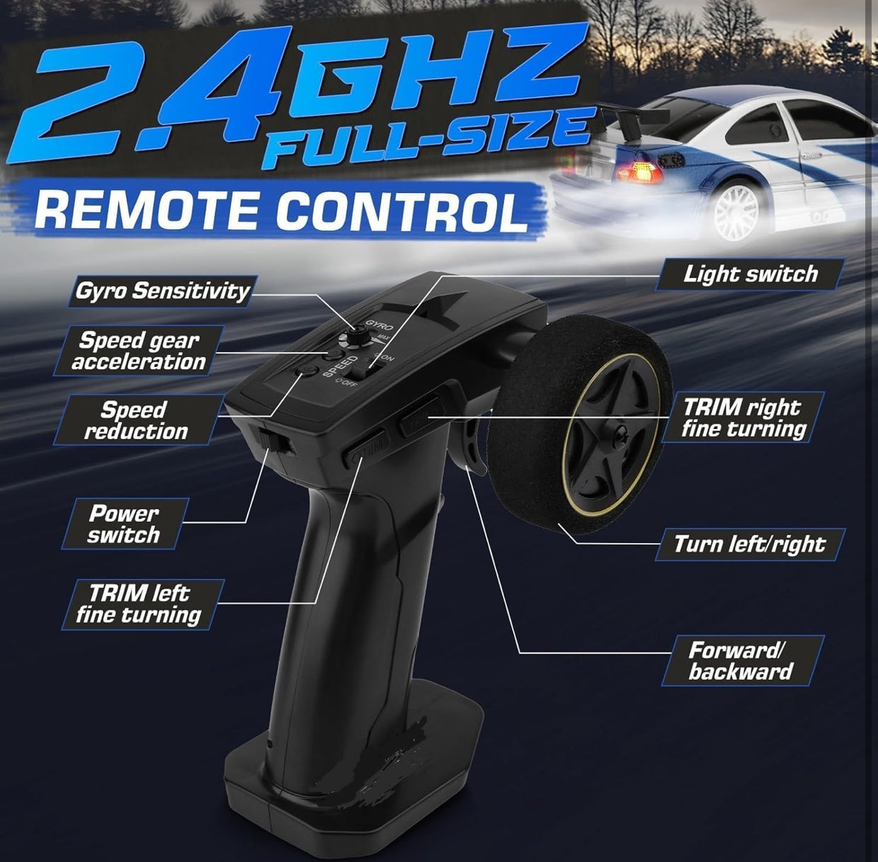 Give your racing game a boost with this ultra-fast, precision-controlled 1:43 Drift RC Car. Equipped with 4-wheel drive, built-in gyro stabilization, LED headlights, and multiple tire sets, this mini beast delivers big performance in a compact size. Perfect for beginners, hobbyists, and drift lovers!