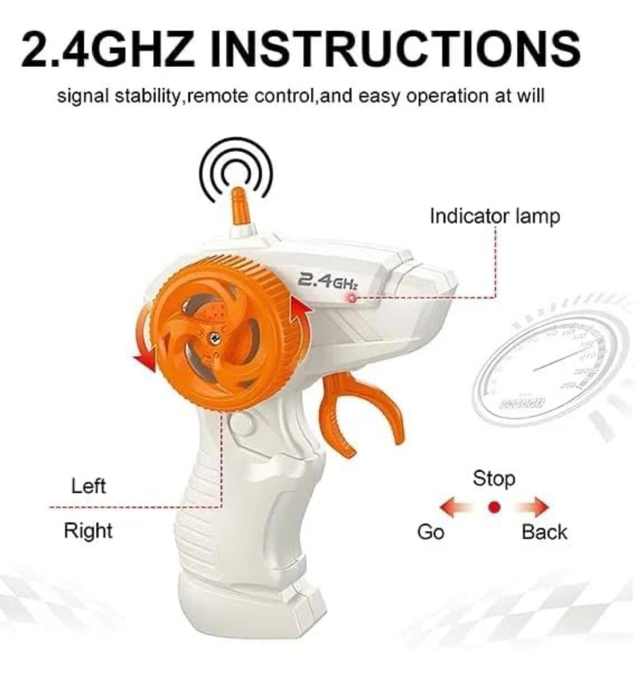 • Full Remote Control: Take full command with the included 2.4 GHz remote controller. Steer the car forward, backward, left, and right to race with friends or navigate custom obstacle courses.