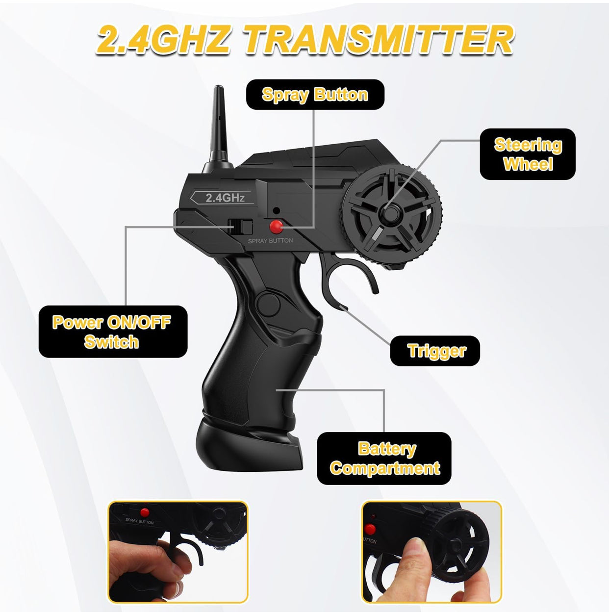 - 2.4GHz anti-interference remote for smooth, responsive control